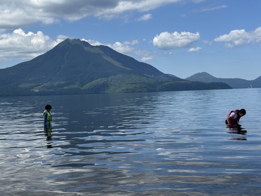 🏖️すぐ目の前には、波の静かな支笏湖の遠浅ビーチ。