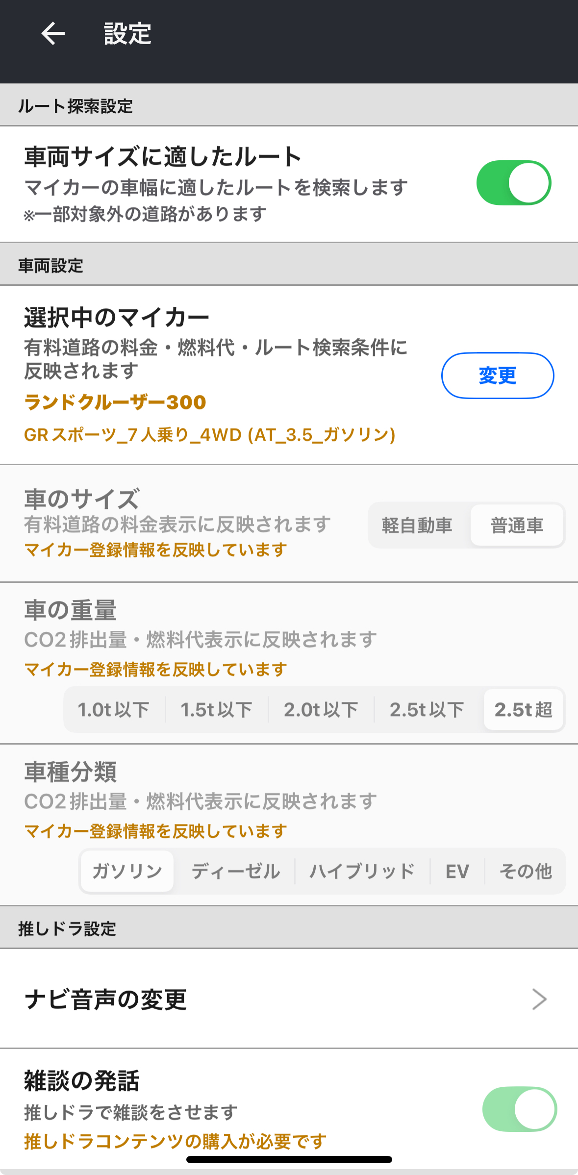 Yahoo!カーナビなら、事前に車両サイズを登録できるので、キャンピングカーの幅や高さに配慮したルートを案内してくれます。